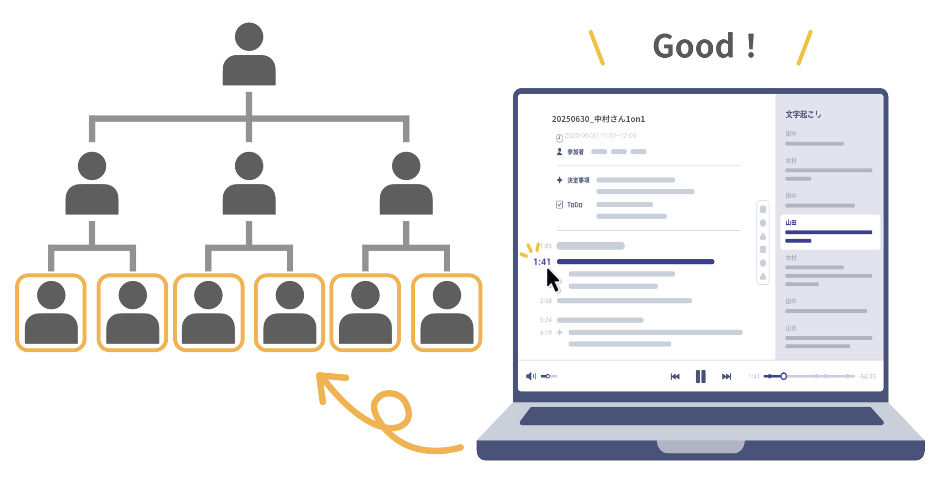 今回はそんな方向けに、多数のメンバー相手に社内1on1を実施するマネージャー層を軸とした活用ストーリーをご紹介します。